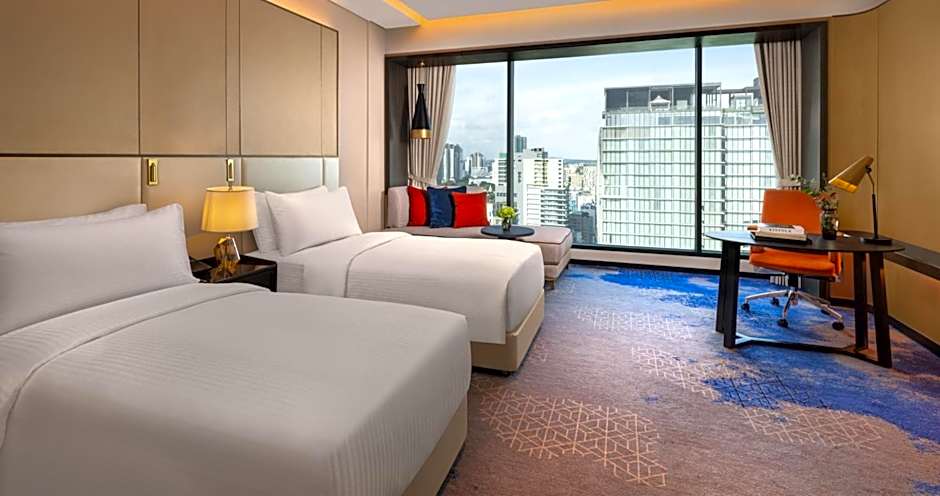 Providing free toiletries and bathrobes, this twin room includes a private bathroom with a shower, a bidet and a hairdryer. The spacious air-conditioned twin room provides a flat-screen TV with streaming services, soundproof walls, a tea and coffee maker, a seating area as well as city views. The unit offers 2 beds.
